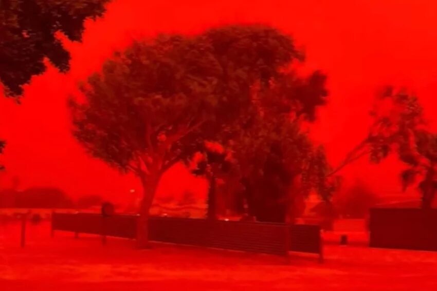 Avustralya’nın Batı Avustralya eyaletine bağlı Carnarvon kasabası, tropikal sistemin etkisiyle oluşan şiddetli toz fırtınasına sahne oldu. Kuvvetli rüzgârların tonlarca kırmızı toprağı havaya kaldırmasıyla gökyüzü kızıl renge büründü. Görüntü adeta bir film sahnesinden fırlamış etkisi yarattı.