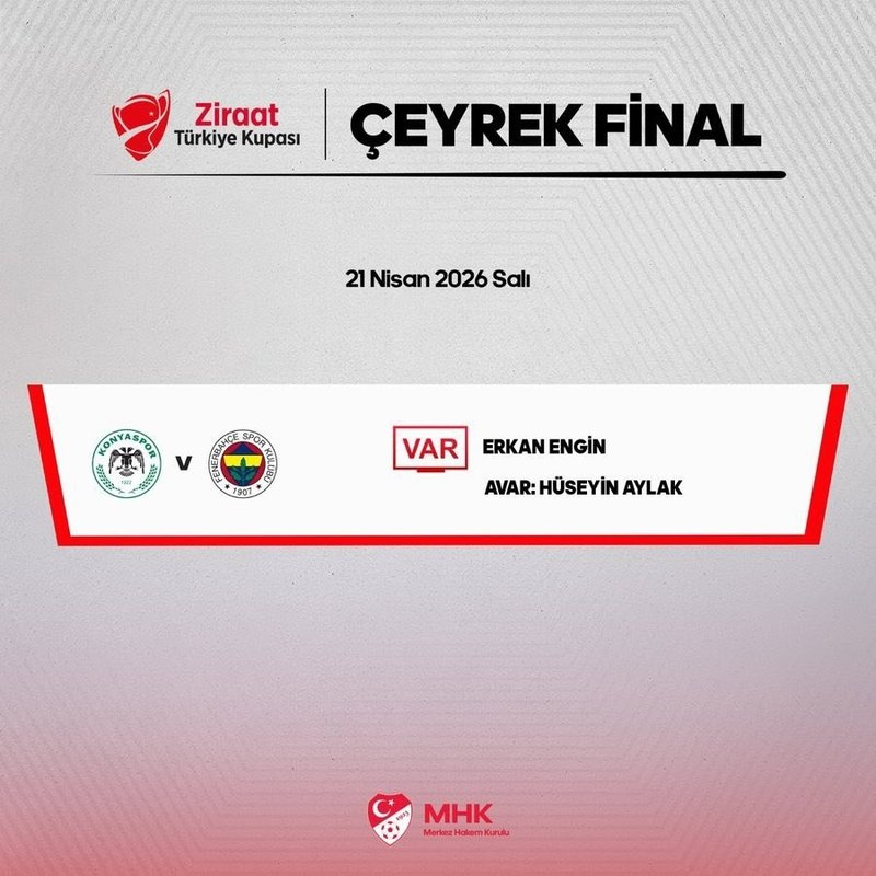 Ziraat Türkiye Kupası çeyrek finalinde oynanacak TÜMOSAN Konyaspor-Fenerbahçe maçının VAR görevlendirmeleri belli oldu. İşte detaylar…