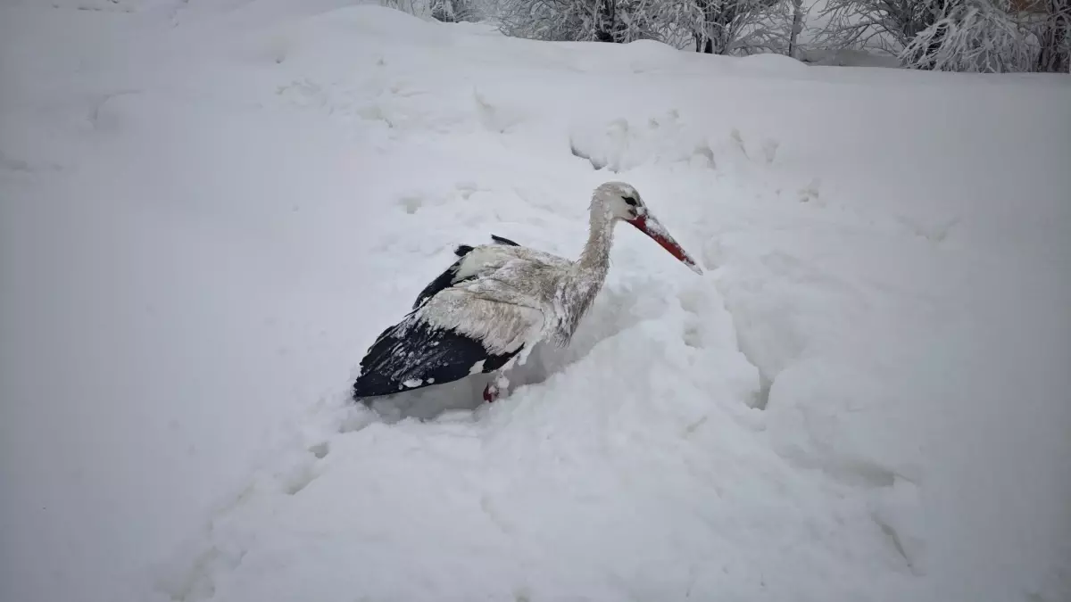 Yüksekova’da iki gün önce etkili olan yoğun kar yağış ve tipi, yaban hayatı da olumsuz etkiledi. Büyükçiftlik beldesi Kerem Zeydan Mahallesi’nde göç etmeyen leyleklerden biri, ağır kış şartları nedeniyle yuvasından düşerek karlar içinde kaldı. Mahalle sakinlerinden Burhan Yalçın, evinin yakınında hareketsiz halde duran leyleği fark etti. Kuşu evine getiren Yalçın, kanatları donan ve uçamayan leyleği, sıcak ortama alıp, su ve yiyecek verdi.